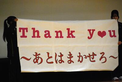 感謝祭 投稿: 教頭 (14:14) 2月20日(金)、合唱祭の延期に伴い、例年より遅い感謝祭となりました。1.2年生からは、3年生に体育祭の団ごとの応援と学年合唱、そして感謝のメッセージを贈りました。あと2週間で卒業式を迎える3年生、がんばれ3年生、あとは私たちに任せて! Tweet -
